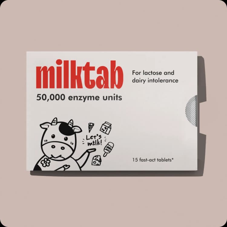 If you feel discomfort after eating dairy, then your body may not be naturally producing enough digestive enzymes (such as lactase, protease, and lipase) to digest dairy. milktab supplements your body with these digestive enzymes, allowing you to feel better when eating dairy.